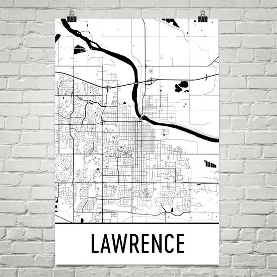 Lawrence KS Street Map Poster Wall Print by Modern Map Art