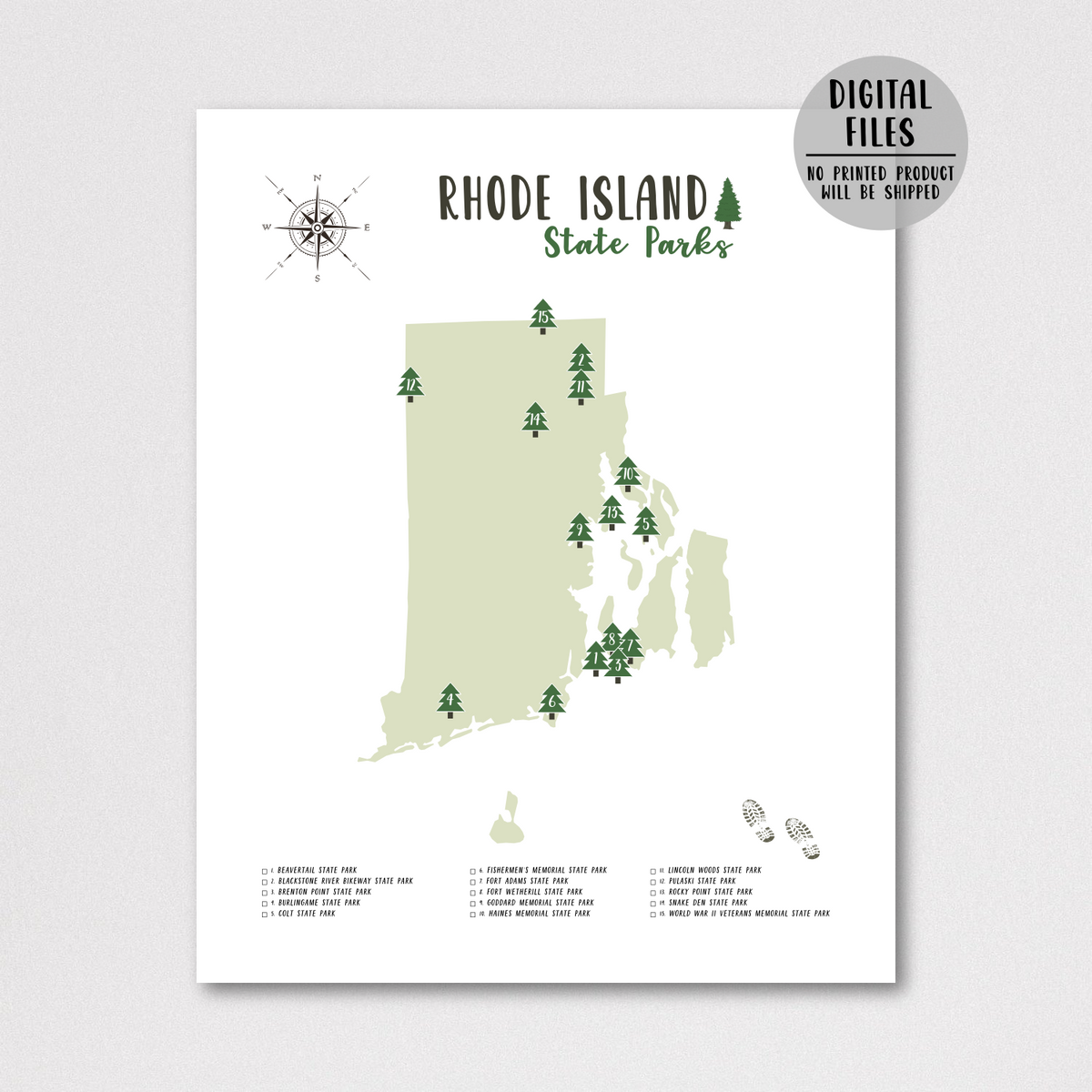Rhode Island State Parks Map | Rhode Island Map Print | Gift For